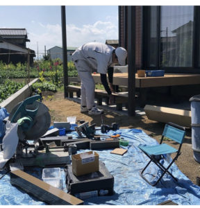 パーゴラ取付の次はデッキ取付です❗️きっと、ほっこりさせる場所になりますね🌲私もパーゴラに薔薇の🌹カーテンをしたいです💕