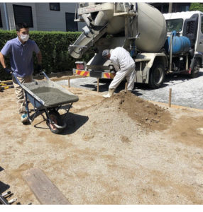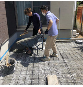 吉井町の現場に戻り、デッキ下の土間コンクリート打設👍暑い中ありがとう🙇♀️
